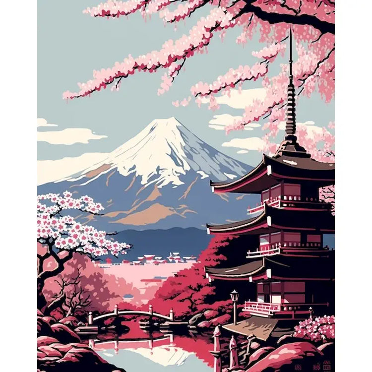 Japanese temple and Mount Fuji